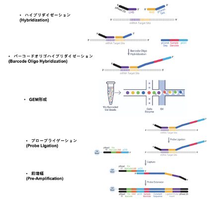 • Barcode Oligo Hybridization: サンプルの識別とマルチプレックス化を可能にすること。